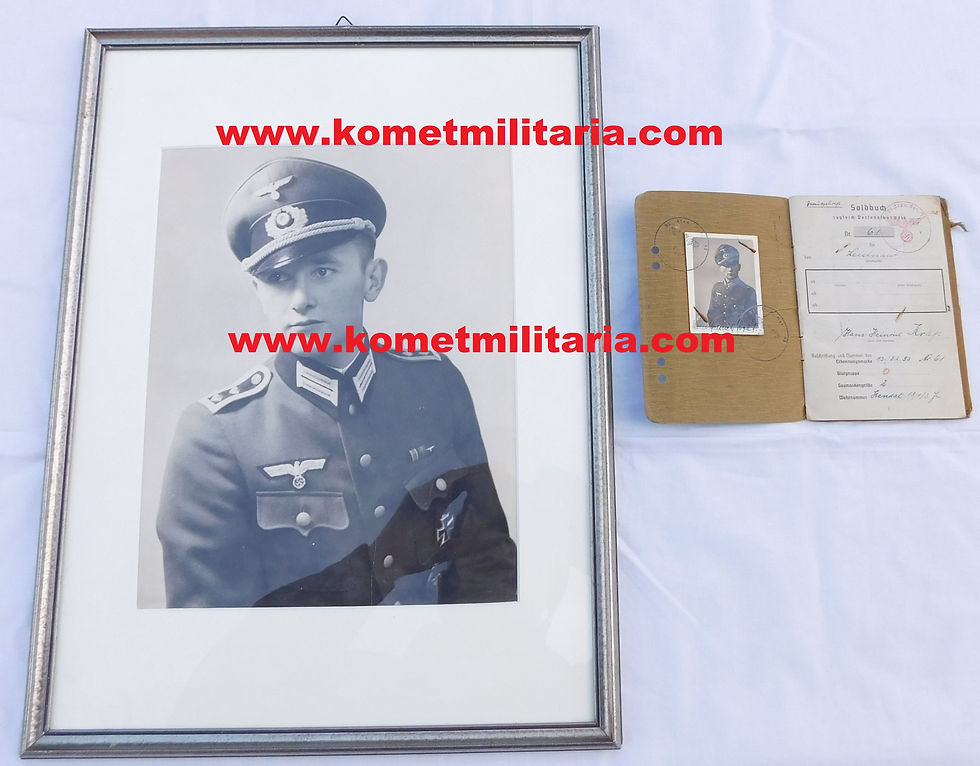 Soldbuch+Framed Portrait Ltn. Panzer-Grenadier-Rgt. 33, 6 awards EK2 f. Polen